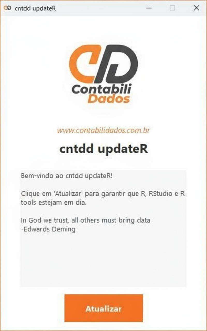 Pensando nisso, criamos o cntdd updateR — um assistente gráfico que atualiza automaticamente todo o seu ambiente R com apenas um clique.
